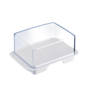 - Bijzonderheden: Boterschaal op voetjes met een doorzichtige deksel van kunststof.