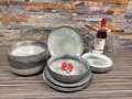 Dit is een prachtig servies. Ieder exemplaar heeft uniek glazuur in tinten grijs en blauw/groen.